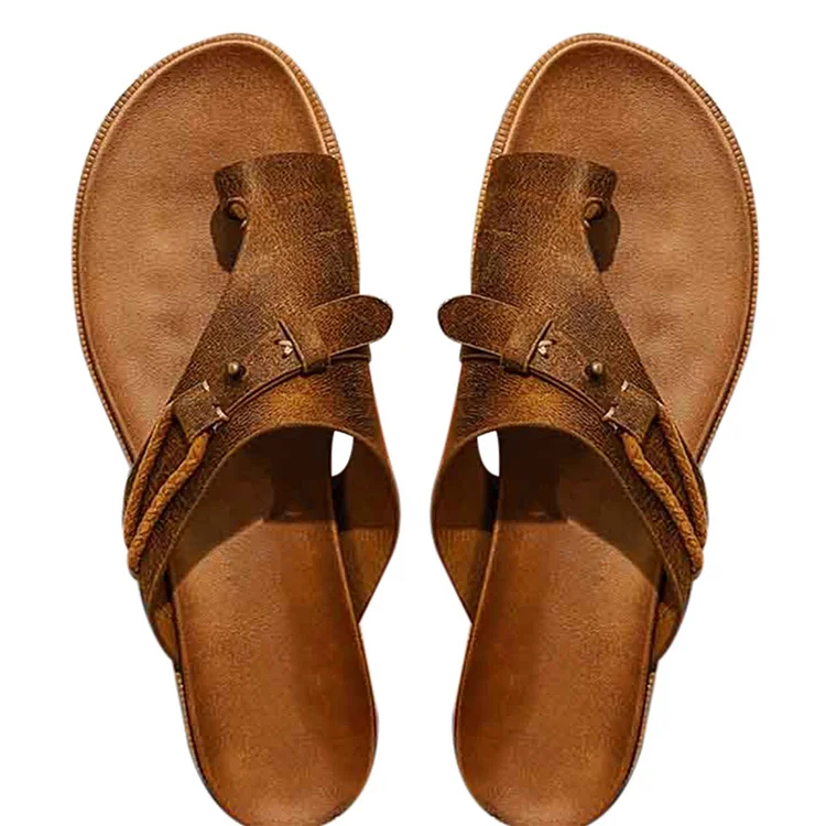 🔥CLEARANCE SALE🔥Genuine Leather Summer Ladies Orthopedic Casual Toe Separation Slippers With Arch Support
